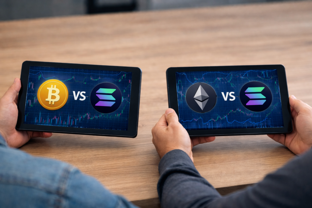 Quando comparada a redes mais consolidadas, a Solana oferece eficiência superior em custo e velocidade, mas cobra isso com maior complexidade técnica e menor margem para falhas.